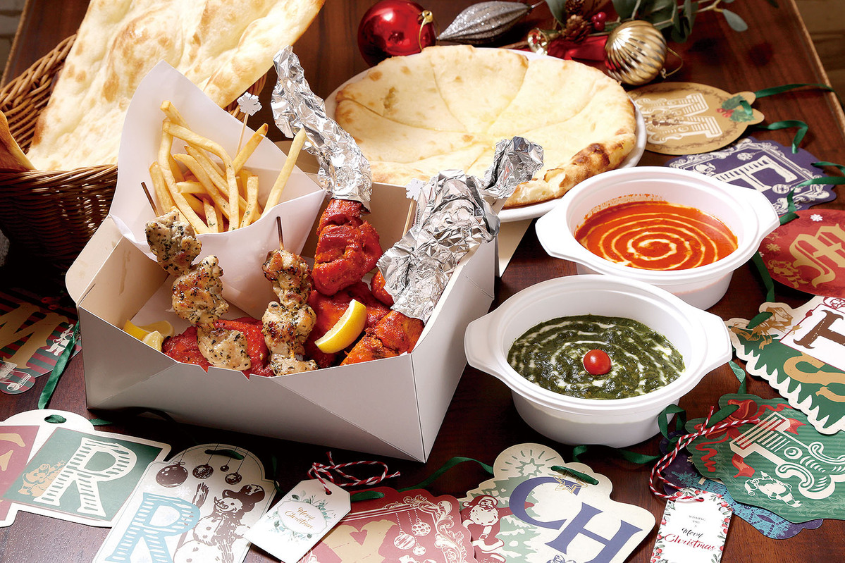 数種類のスパイスに漬け込み炭火でじっくり焼き上げたタンドリーチキンや、家庭で楽しめる「Xmasパック」など、クリスマスの夜を彩るメニューが満載! お店でクリスマスディナーやランチを楽しむのも◎。通常ランチは825円~。