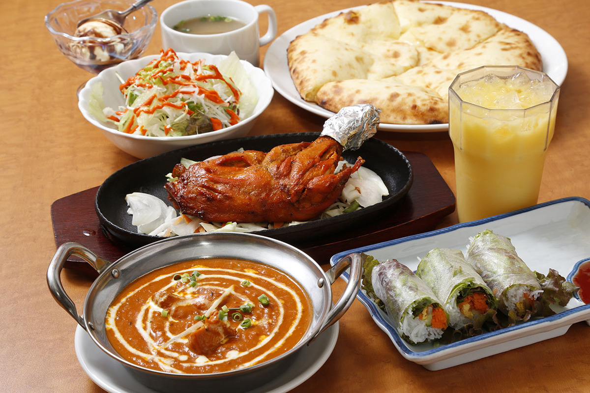 MENUメニュー おすすめメニューOSUSUME MENU ランチ ランチスペシャルセット ¥1,650(税込) ディナー レディースディナーセット ¥1,529(税込) 宴会・パーティー パーティコース(5名様~) ¥3,410(税込) テイクアウト テイクアウトセット各種 ¥734~(税込) メニューMENU ランチ *下記の表示価格は、すべて税込となります ※料理内容や料金は、仕入れ状況や季節に応じて変更になる場合がございます。店舗にてご確認ください。 ランチスペシャルセット 1650円 お好きなナン+お好きなカレー1種類(チキン、ポーク、シーフード、ビーフマサラ、ほうれん草チキン、プラウン(海老)、ナスマサラ、ポークマサラ、バターチキン、チキンキーマ、マトンマサラ、チキンティッカマサラ)+生春巻き3P+チキンティッカ(2P)orタンドリーチキンorシークカバブ+サラダ+スープ+ソフトドリンク+アイス アジアンランチ 1419円 *カレー(セットカレーより2品選択) *ナン+チーズナン *生春巻き3P *チキンティッカ+レシミカバブ *サラダ *スープ *セットドリンク *デザート ダブルカレーランチ 1265円 *カレー(セットカレーより2品選択) *ナンorサフランライス *サラダ *スープ *セットドリンク ステーキランチ 1320円 *カレー(セットカレーより1品選択) *ナンorサフランライス *チキンステーキorポークステーキ *サラダ *スープ *セットドリンク *デザート 選べるナンランチ 1320円 *カレー(セットカレーより1品選択) *お好きなナンorサフランライス *サラダ *スープ *セットドリンク ペアランチセット(2人分) 2,420円 *カレー(セットカレーより2品選択) *お好きなナン1品 *ナンorサフランライス *タンドリー料理 (チキンティッカ2P) *スープ2品 *サラダ2品 *セットドリンク2杯 *デザート2品 チーズナンランチ 1265円 *カレー(セットカレーより1品選択) *チーズナンorハニーチーズナンorナンorサフランライス *スープ *サラダ *セットドリンク タンドリーランチ 1,210円 *カレー(セットカレーより1品選択) *タンドリーチキン *ナンorサフランライス *サラダ *スープ *セットドリンク 生春巻きランチ 1,188円 *カレー(セットカレーより1品選択) *ナンorサフランライス *生春巻き3P *チキンティッカ1P *サラダ *スープ *セットドリンク Aランチ 968円 *カレー(ポーク、チキンキーマ、アルパラク、チキン、ベジタブル、日替りより1品選択) *ナンorサフランライス *サラダ *スープ *セットドリンク お子様セット ※ご注文は7歳まで 605円 *ミニナンorミニハニーナンorミニライス *ミニカレー *ミニサラダ *ドリンクバー 【セットカレー(16種類より選択)】 チキン、ポーク、ビーフ、マトン、シーフード、アルパラク(じゃがいもとほうれん草)、ダルパラク(豆とほうれん草)、ダル(豆)、チキンキーマ、チキンサグ、バターチキン、チキンマッシュルーム、キーマチーズ、ほうれん草マッシュルーム、ベジタブル、日替り 0<甘口> →1<普通>→2<中辛>→3<辛口>→4<激辛>カレーの辛さは調節できます!辛さ5以上もOK! 【お好きなナンに変更できます】 ・チーズナン +330円 ・ハニーチーズナン、チョコナン 各+363円 ・バジルチーズナン、明太子チーズナン、ガーリックチーズナン、ピザナン 各+385円 ・ゴマナン、ハニーナン、ガーリックナン 各+220円 【セットドリンク】 ドリンクバー、マンゴー、マンゴーラッシー、ラッシー、 チャイ(ホットorアイス) 生ビール・ハイボール 各+275円の中から1品選択 ●セットご注文時、ナンorサフランライスおかわり自由●(但し人数分注文の方に限る、両方同時注文もOK) ○サイドメニュー *セットメニューと一緒にいかがですか? ポテトフライ 308円 オニオンリング 308円 生春巻きサラダ(3P / 6P) 330円/660円 チキンナゲット 418円 マグロカツ 2P /400円 エビフライ 5P/550円 手羽先 4P/ 550円 エッグブレジ 550円 チキンティッカ(2P ) 550円 タンドリーチキン(1P) 550円 シークカバブ(2P) 660円 エビマヨ(4P ) 660円 チキンステーキ 660円 ポークステーキ 660円 鶏の唐揚 660円 パパド2P 165円 ディナー *下記の表示価格は、すべて税込となります ※料理内容や料金は、仕入れ状況や季節に応じて変更になる場合がございます。店舗にてご確認ください。 ステーキ&生ビールセット 1,098円 チキンステーキorポークステーキ+生ビール+サラダ エビマヨディナーセット 1,859円 *カレー(セットカレーより1品選択) *ナンorサフランライス *生春巻き3P *エビマヨ6P *サラダ *スープ *セットドリンク *デザート アジアンディナーセット 1760円 *カレー(セットカレーより2品選択) *ハーフチーズナン+ハーフナンorハーフサフランライス *生春巻き3P *チキンティッカ+レシミカバブ *サラダ *スープ *セットドリンク *デザート チーズナンディナーセット 1,815円 *カレー(セットカレーより2品選択) *チーズナンorハチミツチーズナンorナンorサフランライス *タンドリーチキン1P *サラダ *スープ *セットドリンク *デザート 人気No1★ディナースペシャルセット 1980円 *カレー(全メニューより1品選択) *ナン(全メニューから1品選択、サフランライスも可) *チキンティッカ2P orレシミ