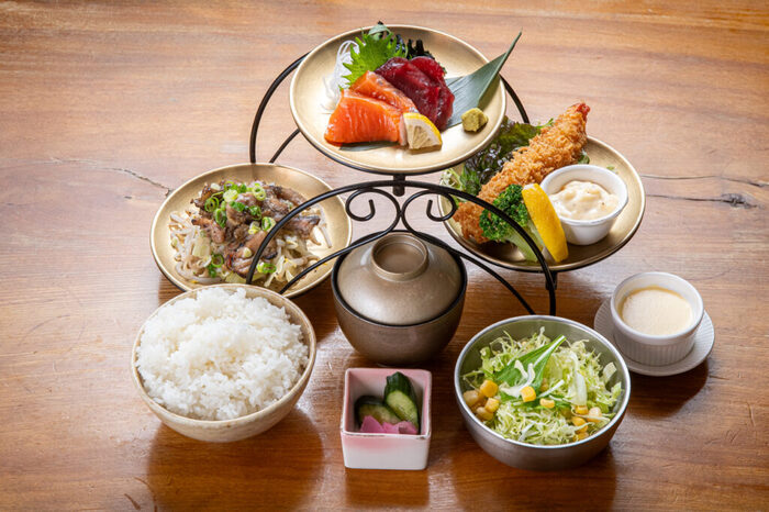 ランチ ほろほろお好み三種御膳 ¥1,628(税込) 保存しました 《A・B・C枠から一品ずつお選びください》 A(お刺身二種盛り・名物だし巻き卵・だし巻き卵の揚げ出し) B(とり唐・ささみカツ・チキン南蛮・大エビフライ・絶品カニクリームコロッケ) C(鶏ハラミ炭火焼・牛みそホルモン・牛塩ホルモン・秀麗豚生姜焼き) 定食 岡崎ランチ 岡崎絶品グルメ 岡崎グルメ 岡崎ランチ ランチ 和食