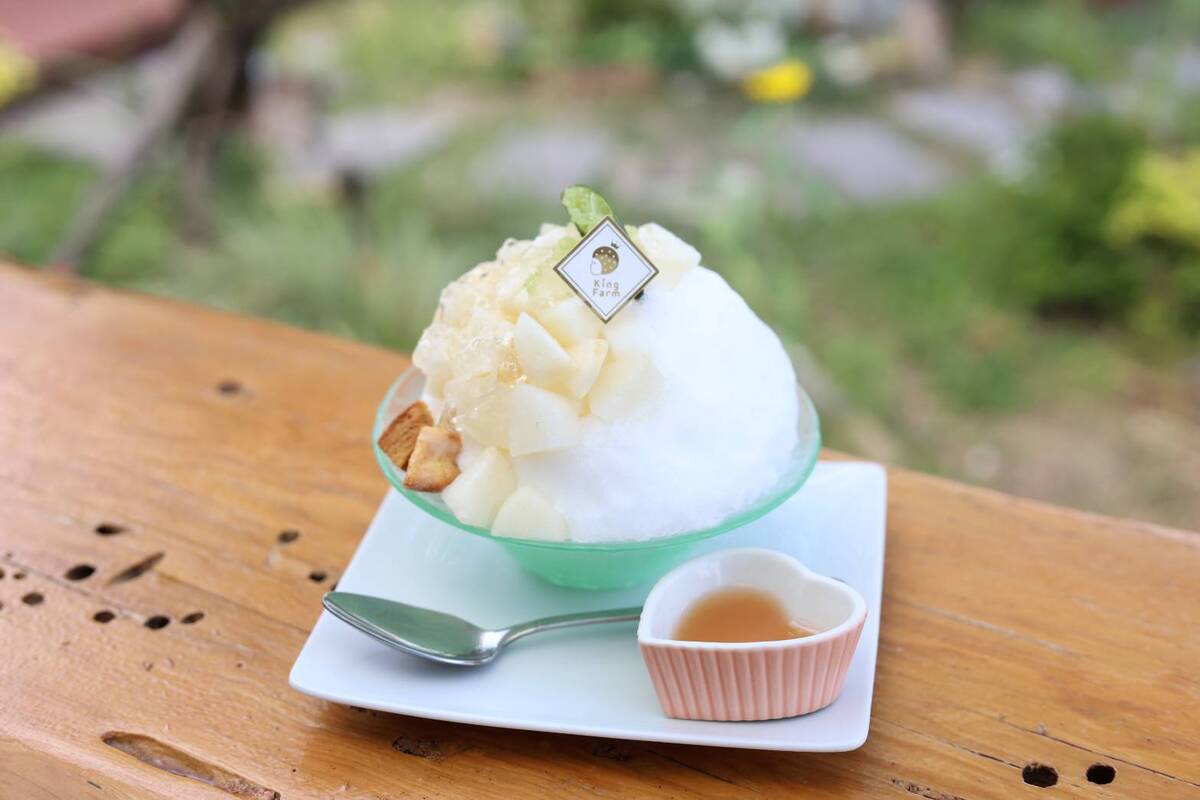 おすすめメニューOSUSUME MENU スイーツ 大河内農園のいちじくごおり ¥1,600(税込) スイーツ きらり園の梨ごおり ¥1,480(税込) スイーツ もももももものかき氷 ¥2,480(税込) カフェ ゴロゴロもものかき氷 ¥1,880(税込)