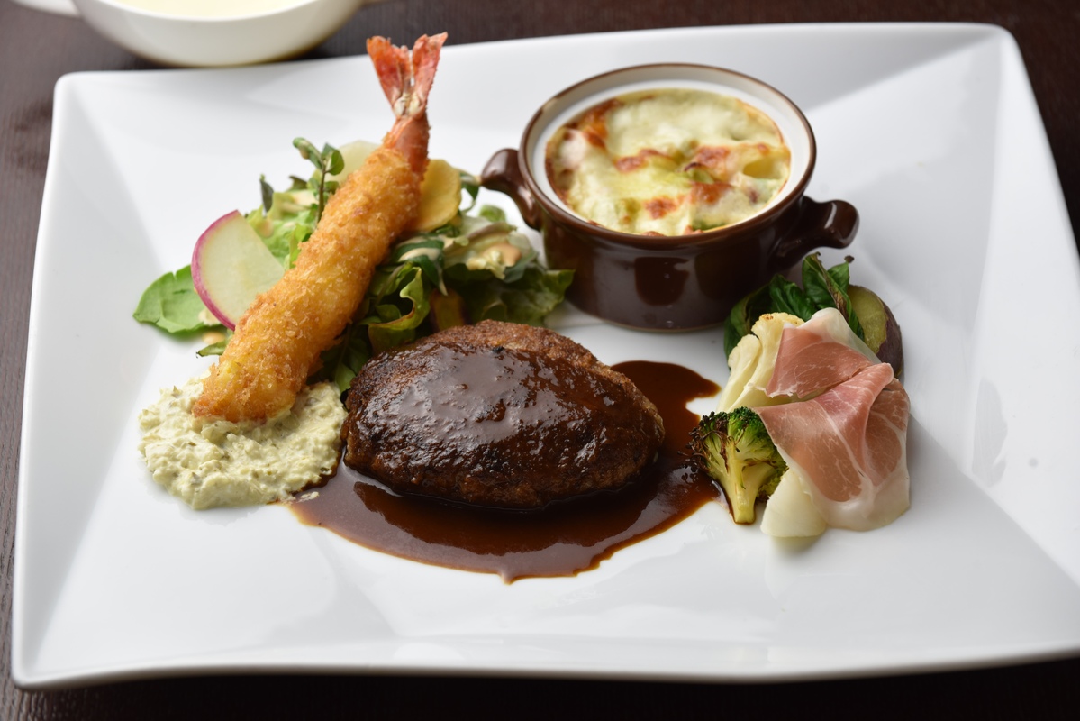 おすすめメニューOSUSUME MENU お祝い 特別な日に、特別な料理を。記念日ディナーコース ¥6,800(税込) ディナー メゾンプレート ¥2,750(税込) ランチ 鉄板黒毛和牛ハンバーグステーキセット ¥1,870~(税込) スイーツ スイーツ各種 ¥660~(税込)