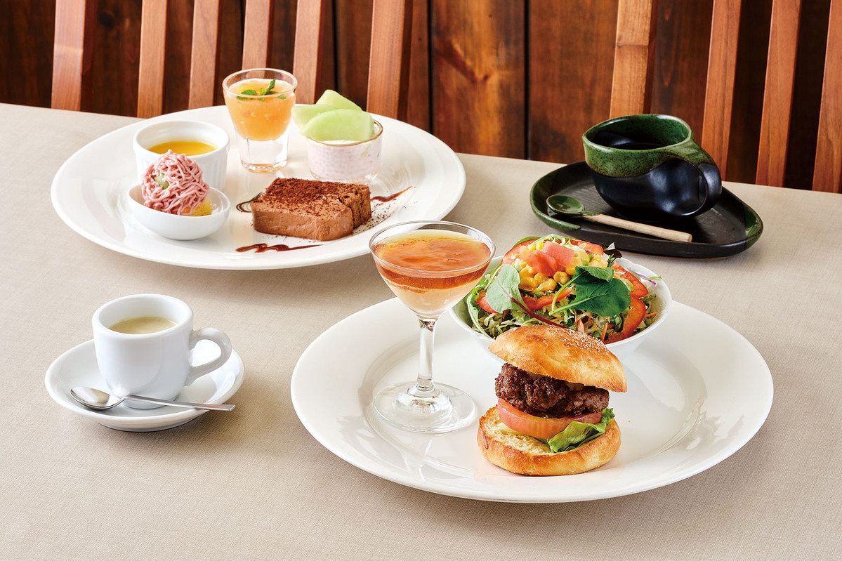 選べる自家製パンにサイド、サラダ、スープ、5種のデザート盛り合わせとドリンク付きの充実内容