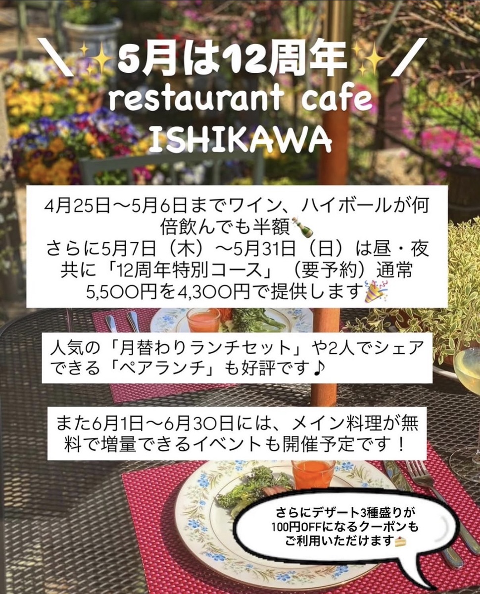 おかげ様で5月で12年目に突入させて頂きます。今年も毎年恒例の周年祭を開催します。お得なコースを今年もご用意致しました。