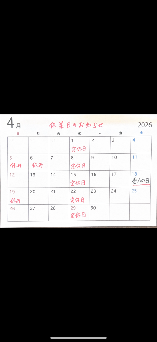 他の記事をみる 定休日&臨時休業 2024.11.01 11月のお休み情報 イベント情報 2023.12.17 お得なキャンペーン 定休日&臨時休業 2023.07.05 定休日変更のお知らせ スタッフのつぶやき 2023.05.15 ★情報誌chaooに載りました★