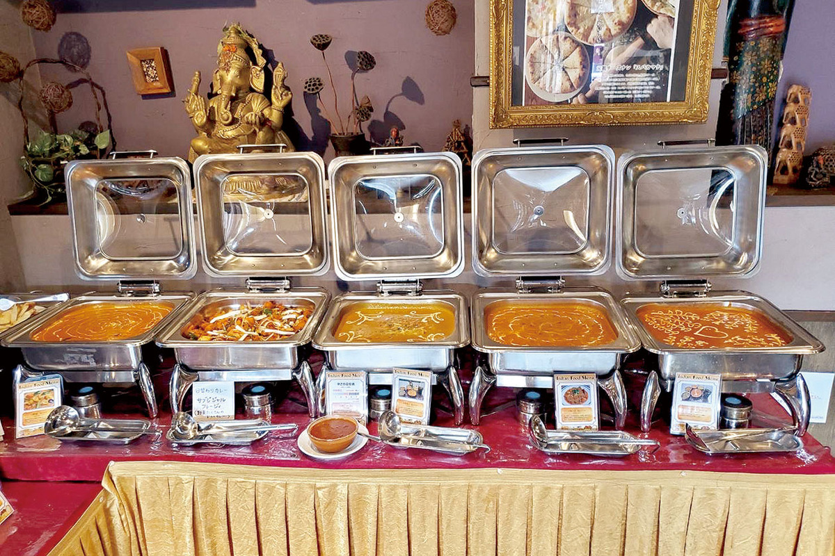ナン(7種)、カレー(5種)、ベトナムフォー、インド日替わり惣菜・スープなど。