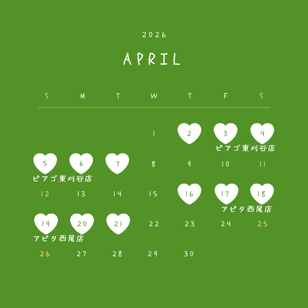 4月の出張販売予定です