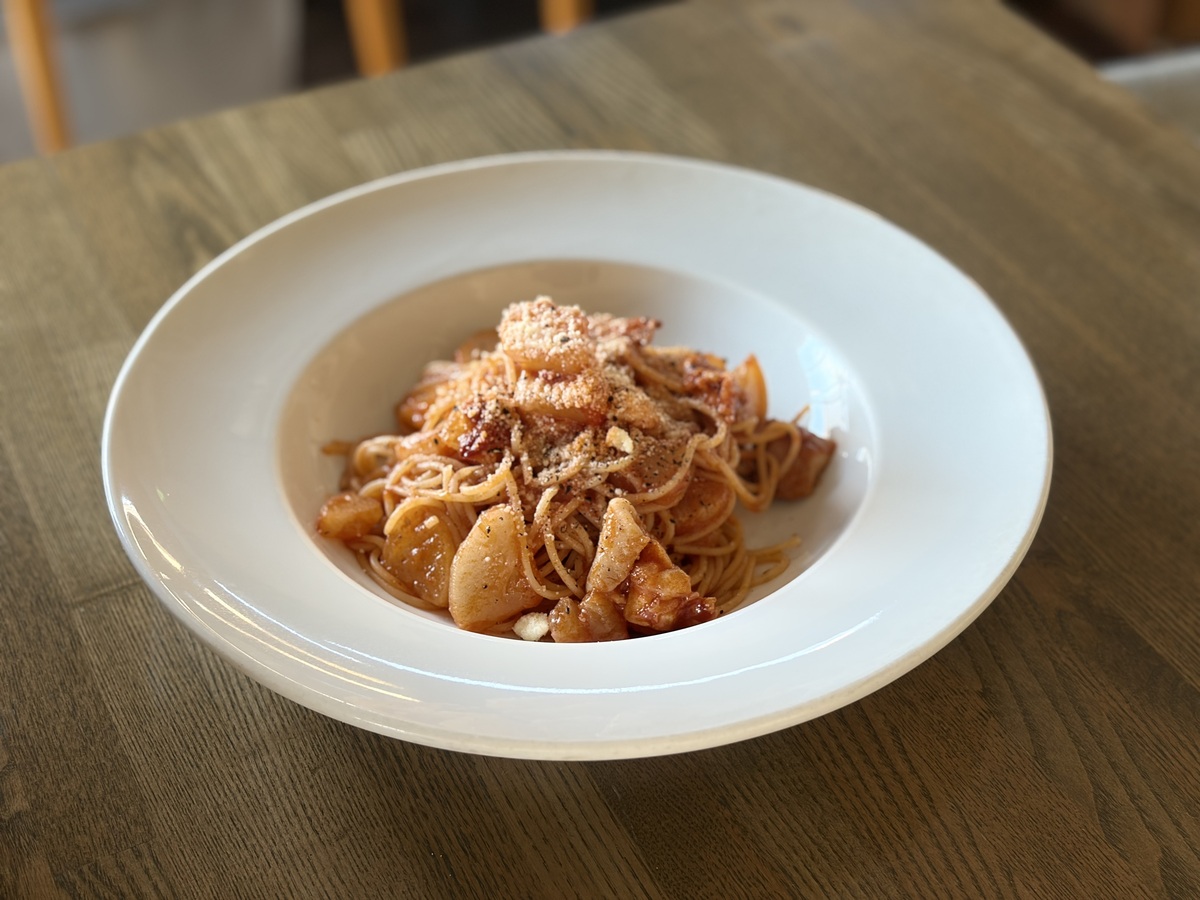 メニューMENU ランチ *下記の表示価格は、すべて税込となります ■□選べるメインのランチ□■ ・自家製ハンバーグ 特製和風ソース(スープ、サラダ、パンorライス付) ¥1,250(税込) 厳選した国産豚の挽肉にスパイスを効かせたジューシーなハンバーグにUMECHIオリジナルの特製ニンジンソースが相性抜群です! デミグラスハンバーグ(スープ、サラダ、パンorライス付) ¥1400(税込) 特製ハンバーグをデミグラスソースで煮込みました。 寒い季節にはピッタリな一品です。 ・チーズハンバーグ トマトビネガーソース(スープ、サラダ、パンorライス付) ¥1,350(税込) ウメチ特製のハンバーグの上にチェダーチーズをのせて焼き上げ、特性トマトソースを添えました。 チキンソテー(スープ、サラダ、パンorライス付) ¥1,400(税込) ジューシーに焼き上げました。トマトソースと自家製マヨネーズとの相性抜群。 ・スペイン産ガリシア栗豚のソテー スイートピクルス添え(スープ、サラダ、パンorライス付) ¥1,250(税込) スペイン・ガリシア州で特別に飼育された豚肉で肉質はジューシーで柔らかく臭みもなく、肉の味が濃いのが特徴です。 不飽和脂肪酸を多く含み甘くあっさりしています。スイートビネガーソースと甘酸っぱいピクルスが、ソテーした豚肉と相性抜群です。 特製タコスライス ¥1,250 シャキシャキレタス、旨みのあるトマトマリネ、濃厚なタコスソース、これらが口の中で混ざり合うことで最後まで飽きさせない味わいです。上にかかった粉チーズが味に深みを出しています。辛くはないです。サラダは上にのっています。 牛すじ肉&ジューシー大根のカレー香るトマトパスタ ¥1,350 パスタには珍しい「大根」が、実はトマトカレーソースと相性抜群。和の食材を洋の技法で仕上げた新感覚のコンビネーションをお楽しみください。 仕上げのチーズと黒胡椒が味を引き締めます。 チーズ苦手な方はスタッフにお申し付けください。 ■□ちょっと贅沢なランチ□■ ・牛ハラミのステーキ(150g)バルサミコソース(スープ、サラダ、パンorライス付) ¥2,400(税込) 焼肉でお馴染みの柔らかいハラミ肉150グラムをステーキにして、甘酸っぱいバルサミコソースを合わせました。 ※焼き加減はレアで提供しておりますが、しっかり焼きをご希望の場合は、お気軽にお申し付けください。 ・合鴨もも肉柔らかロースト(スープ、サラダ、パンorライス付) ¥1600(税込) 骨付きの合鴨もも肉を柔らかく煮込んだ後、ローストしました。 ランチバージョンは付け合わせがサラダになります。 ディナー *下記の表示価格は、すべて税込となります ディナーセット メイン料理にプラス¥880 ディナーセット全体の一例です。 写真は チキンソテー トマトソースとニンニクマヨネーズ2種のソース、生ハムサラダ、ライス、ホットコーヒーです。 ★前菜★ スモークサーモン サラダ添え ¥920(税込) 脂の乗ったスモークサーモンにサラダを添えました。 生ハムのサラダ(2〜3人前) ¥920(税込) とても柔らかくちょうど良い塩気で食べやすい生ハムと特製ドレッシングの相性抜群です。すこし大きめの2〜3人前のボリュームです。 自家製鶏のテリーヌ サラダ添え ¥920(税込) 自家製鳥のテリーヌ:テリーヌ型と呼ばれる蓋付きの方に入れオーブンでじっくり焼き上げた1品、ジューシーなハムのよううな食感で人気です。メイン料理になるくらいのボリュームです。 ローストビーフのサラダ(2〜3人前) 920円(税込) しっとり焼き上げた自家製のローストビーフサラダです。3〜4人前くらいのボリュームで食べ応えアリ! ————————————————————— ————————————————————— ディナーセット メイン料理にプラス¥880 選べるサラダ(ローストビーフ、スモークサーモン、生ハム、の中から1品) パン又はライス 食後のドリンク ★パスタ★ UMECHI特製トマトパスタ ¥1,100(税込) UMECHIオリジナルのトマトソースを使った人気メニュー。是非一度お試しください! えびと青梗菜のカレー風味のトマトクリームパスタ ¥1,320(税込) トマトクリームに煮こまれた青梗菜が美味しいです。 カレー風味が食欲そそります プッタネスカ 1,100円(税込) アンチョビ、ドライトマト、ケイパー、オリーブと個性の強い食材のコンビネーションが大人の味を演出してます。ワインと合います。 鶏とキノコの軽いクリームパスタ ¥1,200(税込) 色々なキノコと鶏肉のクリームパスタです。 ブルーチーズのペンネ ¥1,420(税込) 癖の強いブルチーズがチーズ好きには堪らない1品。2種類のチーズを使い癖になる味です。ワイン好きにはたまらない一品。 個人的に“軽めの辛口赤“が合うと思います。余ったソースはパンにつけて食べると美味しです。 生ハムとバジルのパスタ ¥1,100(税込) 生ハムとサッパリとしたバジルパスタの相性の良い組み合わせです ボロネーゼパスタ ¥1,100(税込) 定番のミートソースパスタです。 イカのオイルパスタ 1,100((税込) イカの旨みが味わえるパスタ タコと明太子の