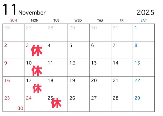 11月お休みのご案内です。