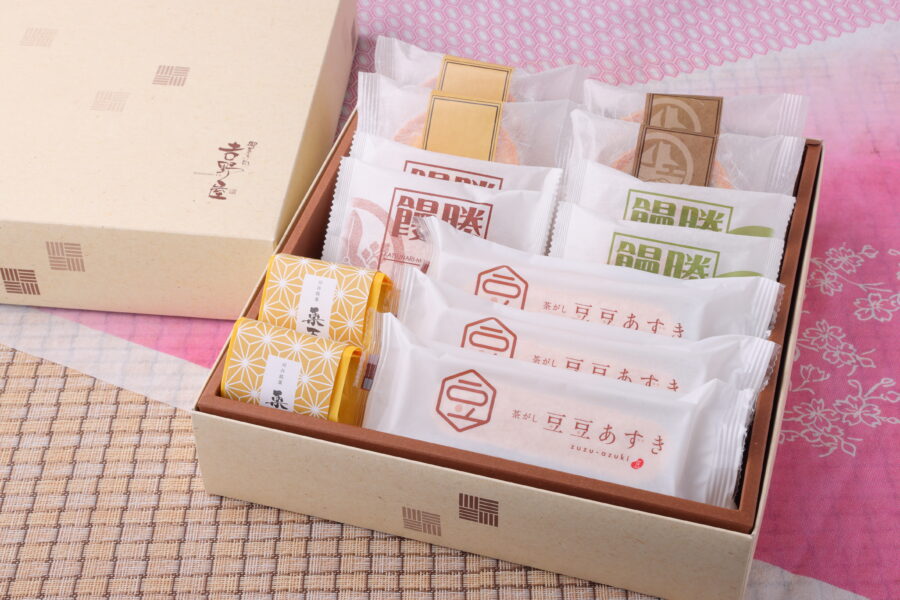 MENUメニュー おすすめメニューOSUSUME MENU テイクアウト 【季節限定】栗きんとん/栗蒸し羊羹 ¥240~(税込) スイーツ 黒岩かりんとう饅頭(黒糖・チーズ・芋餡) ¥182(税込) お祝い 茶がし 豆豆あずき zuzu-azuki ¥175~(税込) 食品・物販 刈谷銘菓 勝成饅-かつなりまん- ¥215~(税込) メニューMENU 和・洋菓子 *下記の表示価格は、すべて税込価格となります 黒岩かりんとう饅頭(黒糖・チーズ・芋餡) 各165円 外はカリカリ、中はふんわりにこだわった当店自慢の人気商品。 徹底した温度管理で製造された商品は、作り置きをあまり行わない少数製造。常に良い状態の商品をお客様にと登場以来こだわり続けています。揚げたてカリカリ食感の黒岩かりんとう饅頭をお試しください。 ※人気商品のため売り切れる場合もあります 数の多い場合は事前予約をオススメします 黒船浪漫-KUROFUNE ROMAN- 230円 芳醇なバター香る船形生地に「和」の黒糖と「洋」のチーズをたっぷりと流しこみ焼き上げました。 アクセントに添えたスライスアーモンドの食感がまた格別です。 賞味期限は約1か月。 豆大福 173円 不動のロングセラー商品。もちもちのお餅の中に赤えんどう豆をふんだんに使用。少し塩味のきいたつぶ餡がまた相性抜群です。 くるみ醤油大福 173円 餅の中にくるみを入れた大福。サクっとした食感とつぶ餡が特徴です。隠し味の醤油がポイント。食べ応えのあるサイズをお値打ち価格で提供しています。 草餅 140円 よもぎの香りが広がる定番和菓子。 食べやすいサイズでお茶うけにどうぞ。中はつぶ餡。 大島饅頭 119円 蒸した黒糖生地とこしあんのシンプルなお饅頭。 吉野屋のロングセラー商品。昔からの根強いファンも多い。 まるみかん大福「氷点果実2」 290円 販売期間7月~9月 みかん大福「氷点果実」がリニューアル!冷蔵庫で冷やしてジューシーなみかん大福か、冷凍庫で凍らせてシャーベットみかん大福か、気分にあわせて食べ方を選べるようになりました。まるごとみかんの入った「まるみかん大福 氷点果実2」を是非お試しください。 水大福 195円 販売期間6月~9月 「ぷるぷるつるん」食感の水大福。つるみある食感が夏にぴったり。 毎年夏になると非常にリピーターの多い商品です。 麩まんじゅうでも水饅頭でもないその独特の食感を味わってください。 白生地のこしあんとよもぎ生地のつぶあんの二種類。 若鮎 240円 販売期間5月中旬~7月 初夏の訪れを感じる代表的な和菓子。 もっちり求肥餅を生地で包んで鮎の形に仕上げました。 黒わらび餅 216円 販売期間5月~9月 沖縄県産黒蜜を加えたわらび餅に5種類の「黒」(黒米、黒豆、黒ゴマ、黒松の実、黒かりん)をブレンドした特製の黒きなこを合わせました。 抹茶わらび餅 216円 販売期間5月~9月 京都産宇治抹茶を加えたわらび餅。 抹茶きなこを合わせ、濃く深みあるお抹茶の味わいをお愉しみください。 国産果肉ゼリー 各280円 販売期間5月~10月 国産の果実を大胆に入れたゼリー。ジュレタイプなのでスルっとしたのど越しが夏にぴったりです。 白桃、丸みかん、林檎、巨峰、の4種類。 栗万燈 216円 つぶつぶの栗を入れた栗餡と黒糖風味の記事を使用した焼き饅頭。 上用饅頭 145円 慶弔時に使いやすい上用饅頭。仏事に白、祝い事には紅の2種類ございます。中は2種類ともコシ餡になります。 ※紅色は要予約 御赤飯 1,450円~ 御祝いや内祝などに昔から広く使われることが多い御赤飯。当店では質の高い「高山米」と北海道産小豆を使用しております。サイズは3種類。小サイズ(6.0寸)で内容量800g、中サイズ(6.5寸)で内容量1000gです。 小サイズ1450円(6.0寸)(税込) 中サイズ1850円(6.5寸)(税込) 誕生餅(一升餅) 3,100円 1歳の誕生日を祝うお餅。 三河地方では紅白で一対の一升 餅になり、形は丸型ではなくわらじ型(楕円形)になります。 ご購入には事前予約(営業日で前日の午前中まで)が必要となります。 紅白上用饅頭2つ入 320円 上用饅頭の白と紅を各1個入れた。御祝用小箱。手ごろなサイズ(縦10cm×横5cm×高さ4cm)でちょっとしたお祝いやお返しにどうぞ。その他10個入り1725円(税込)などもございます。ご相談ください。 初節句、ご卒園ご卒業、ご入園ご入学などにお使いください。 自家挽きアーモンドのフィナンシェ 160円 生地に混ぜ込むアーモンドの香りと風味が引き立つように、独自製法でより濃厚で奥深い味わいになりました。プレーン、抹茶、紅茶の3種類。 自家挽きアーモンドのダックワーズ 160円 サクふわっとしたダックワーズ。アーモンドの香りが香ばしく軽い食感が特徴。プラリネ、抹茶、キャラメルの3種類。 いが饅頭 162円 販売期間2月中旬~3月初旬 三河地方の伝統的なお雛菓子。三色のもち米をこし餡を包んだお餅の上に乗せたお菓子。 菱餅の代わりに雛人形のお飾りにも使われます。 きんつば 173円 昔からある代表的な和菓子のひとつ。寒天で固めたつぶ餡を四角形にして表面を小麦粉の皮をつけて焼き上げた御菓子。 おはぎ(6個入) 714円 販売期間 お盆・お彼岸の限定商品 餅米をつぶ餡